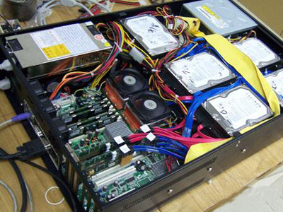 每个服务器单独使用本机存储,一般是sata或sas硬盘做Raid5阵列。